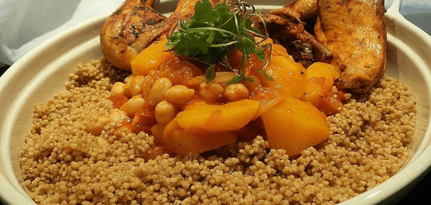 the ingredients Fresh or frozen twisted kilogram Three whole chickens . Sliced kilogram sliced. Five hundred grams of dry chickpeas